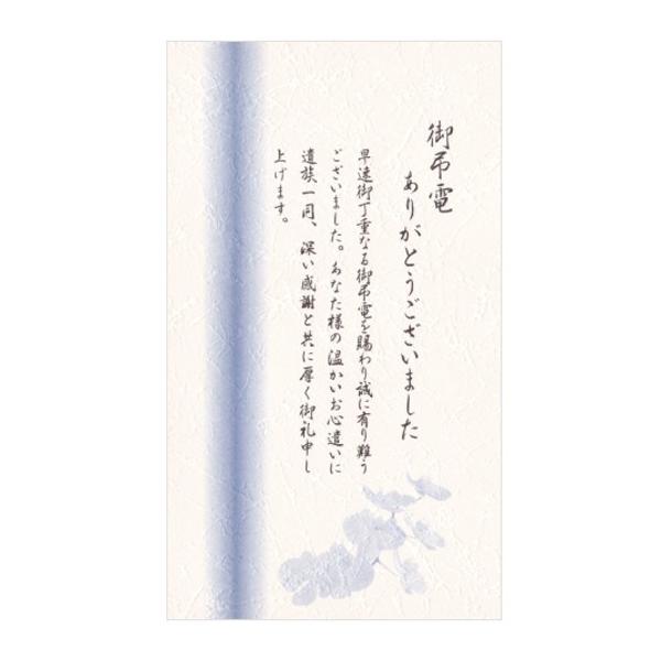 いただいた弔電のお礼とのことですので、下のようにお返事されると良いと思います。 1) Thank you for your kind thoughts at this time 「ご丁寧な弔意をいただきありがとうございます 弔電のお礼を送るタイミングやマナー "弔電のみ"を頂いた場合は、 葬儀が終わってから一週間以内に「お礼状」を出す のが一般的で、品物でのお礼は必要ありません。 もし"弔電+香 弔電のお礼は、相手方へ赴いて直接伝えるのが本来のやり方。 しかし、近年ではお礼状で伝えることが一般的になっています。 お礼状の形式 「白もしくはグレーのはがき」または「白